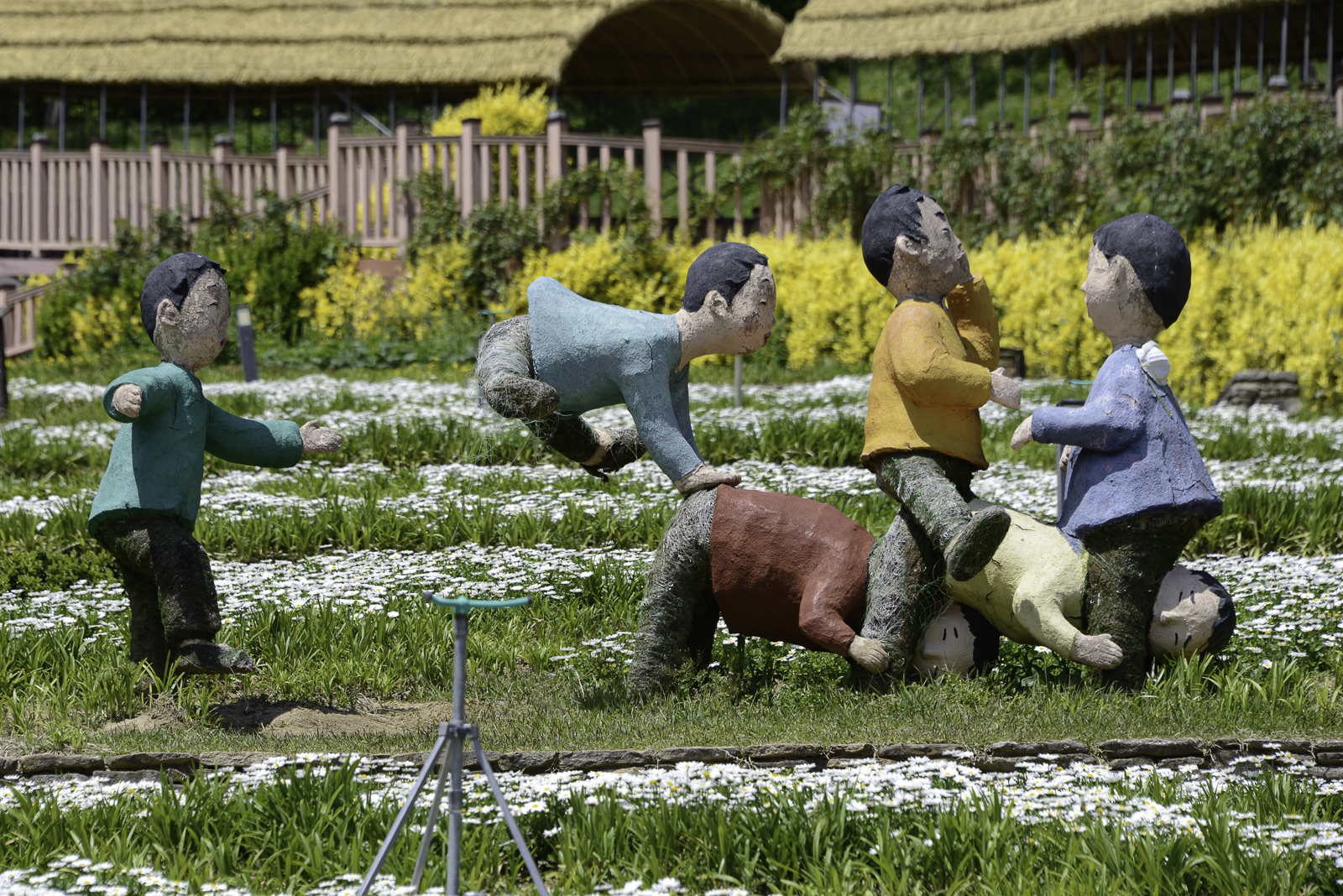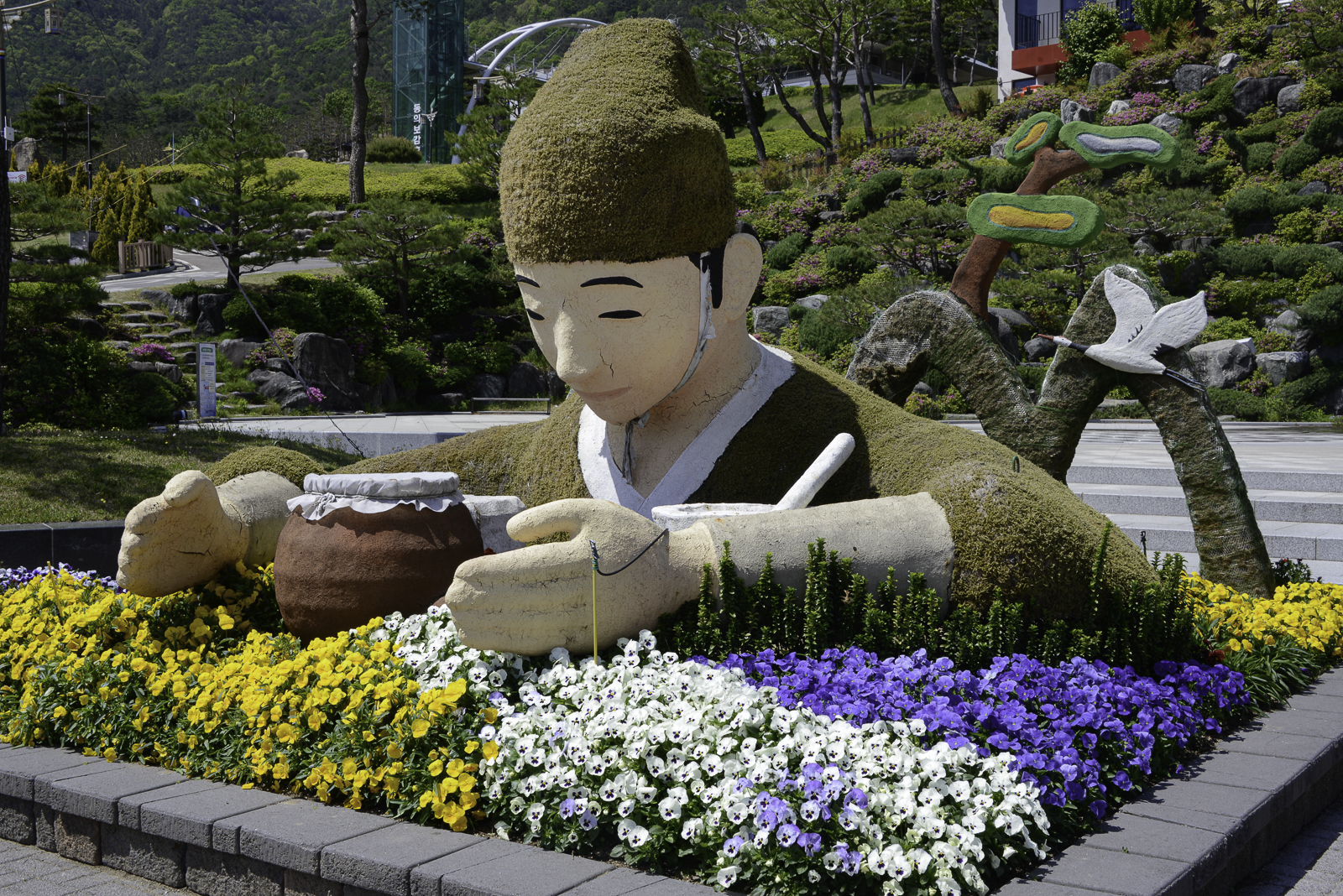 상록수림을 활용하여 인체의 형태를 선형아트로 연출하였다.