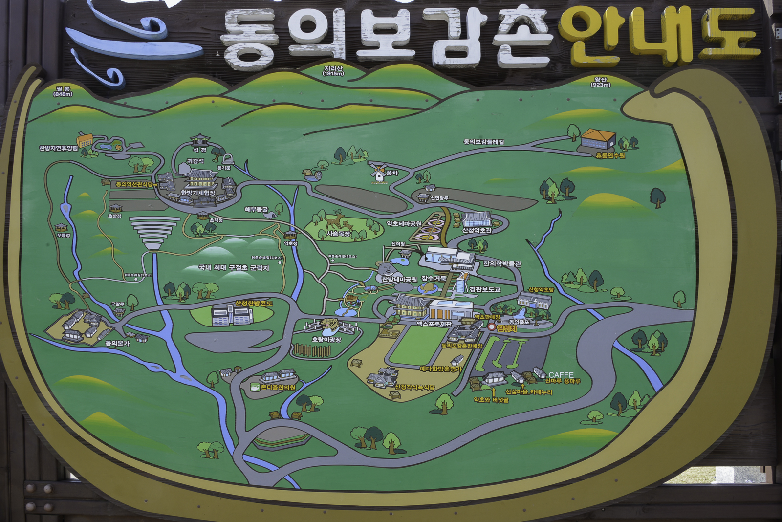 전통한방휴양관광지, 동의본가, 한방자연휴양림 등으로 조성되어 있으며 백두대간의 신비한 기운을 담아 내뿜고 있는 천혜의 자연휴식공간이자 국제행사인 '2013 산청세계전통의약엑스포' 개최지로 다양한 웰니스 체험이 가능하며 대한민국 힐링여행 1번지로 각광받고 있다고 합니다.