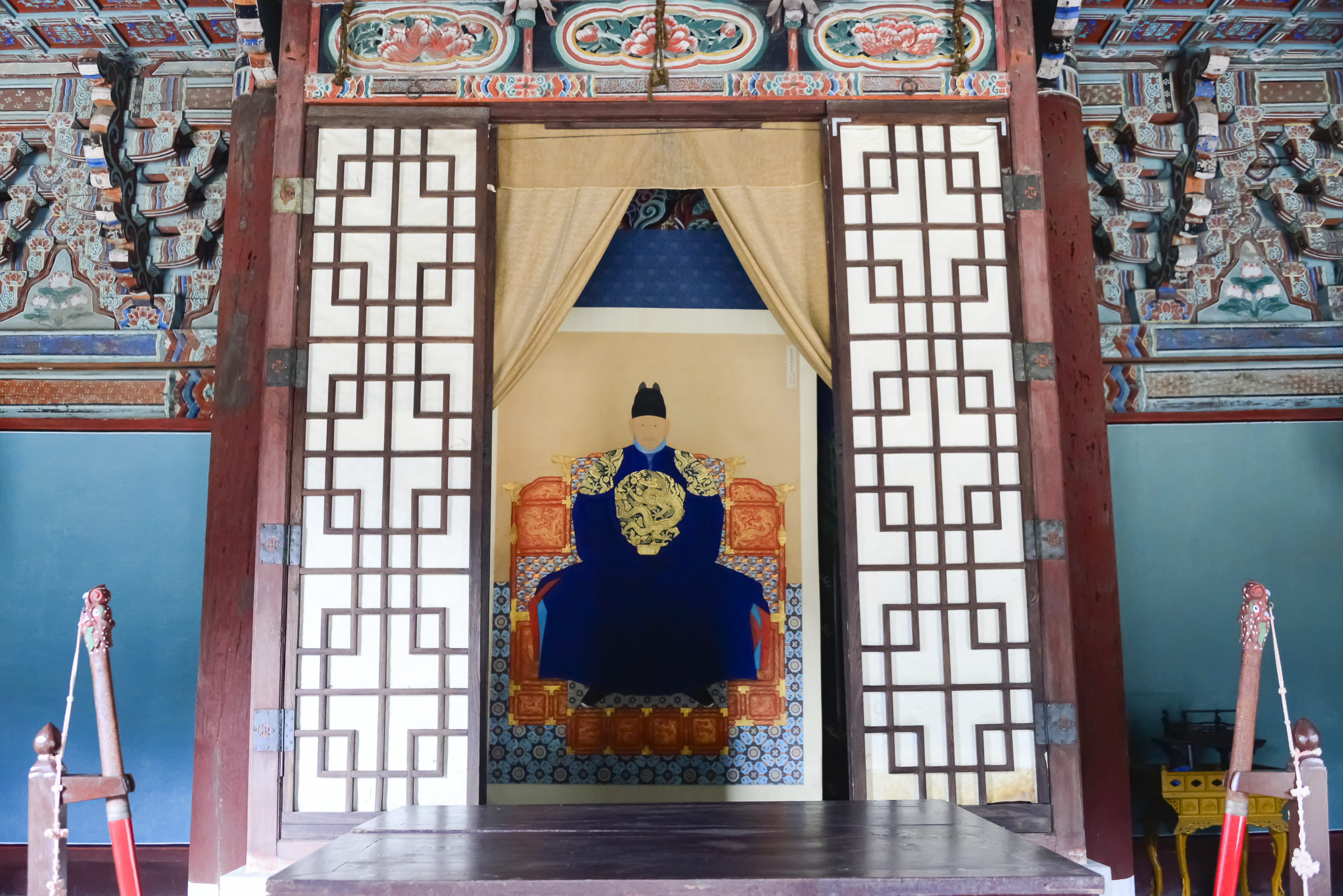정전의 한가운데 감실을 두고 여기에 태조어진을 모셔놓고 있다. 청룡포를 입고 있는 전신상 어진으로 건국자의 위엄이 서려 있다. 1872년(고종 9)에 새로 모사한 어진이며, 구본은 초상을 물에 씻어내고 백자항아리에 담아 진전 북쪽에 묻었다. 태조어진을 봉안한 감실 안에는 습기와 냄새를 제거하고 병충해를 막기 위해 부용향을 담은 붉은색의 향주머니를 넣어 두었다. 감실 앞쪽에 어진을 호위하는 운검 한 쌍을 세워두었으며, 정전 좌우편으로는 용선, 봉선, 홍개, 청개 등 의장물을 배치하였다.