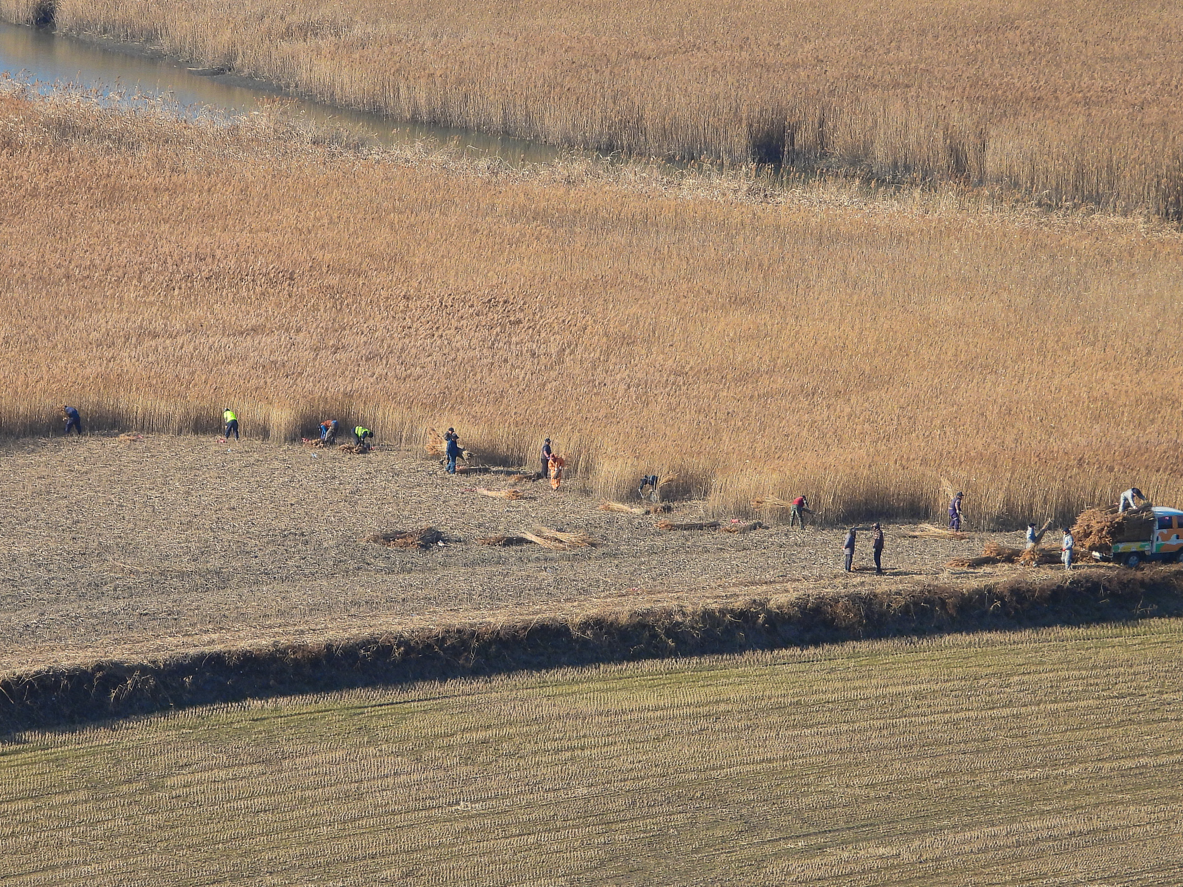 새롭게 싹드는 봄을 위하여 갈대를 베는 모습들입니다. 일자리 창출도 하며 갈대를 여러용도로 사용한다고 합니다