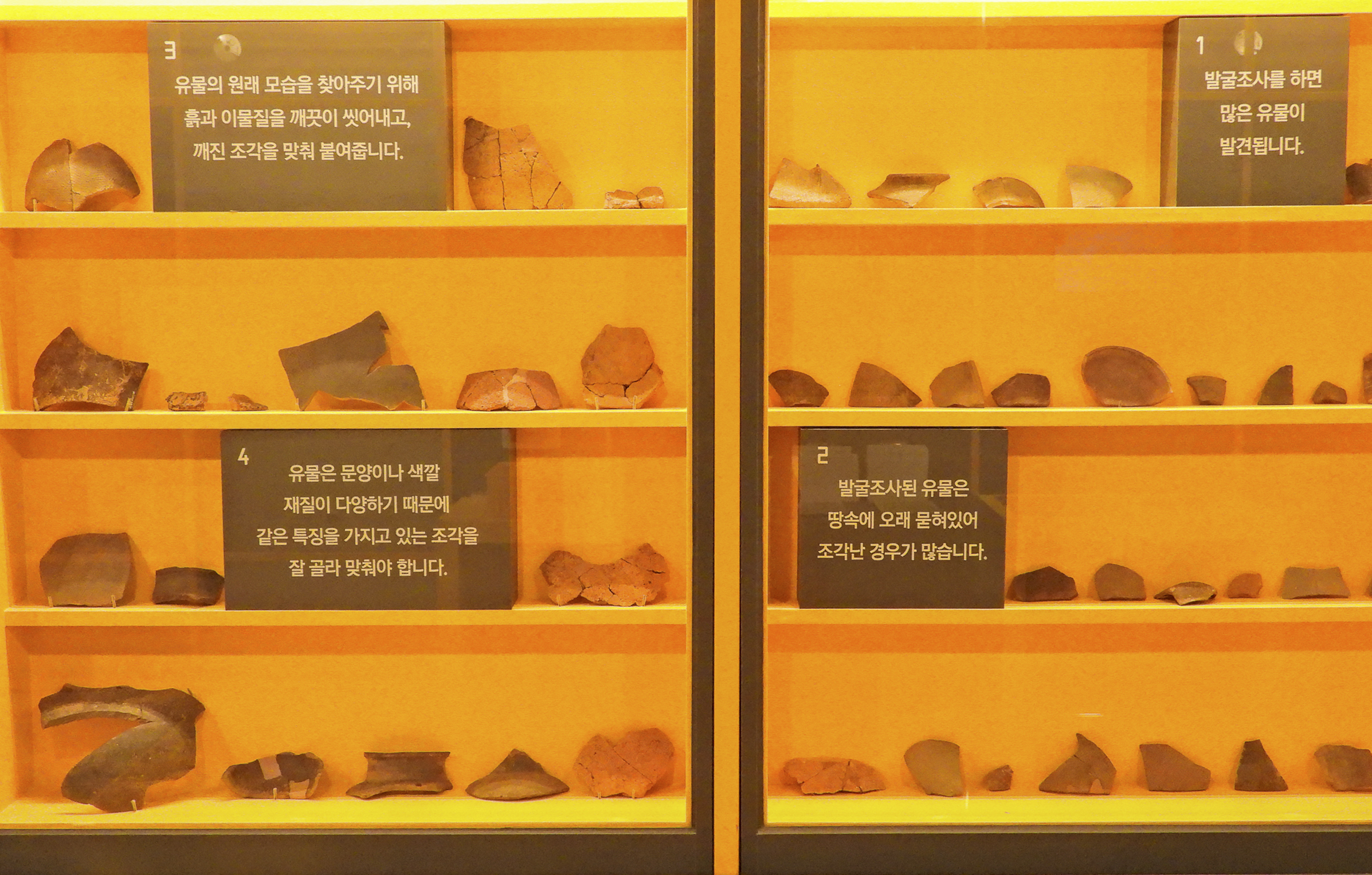 발굴조사를 하면 생각보다 많은 유물이 발견됩니다. 많은 유물 중 일부는 국가에 귀속되어 박물관에 보관·전시되지만, 국가에 귀속되지 않는 비귀속 유물은 연구와 교육 등의 활용을 위해 발굴조사를 진행한 기관이 별도로 관리하게 됩니다.