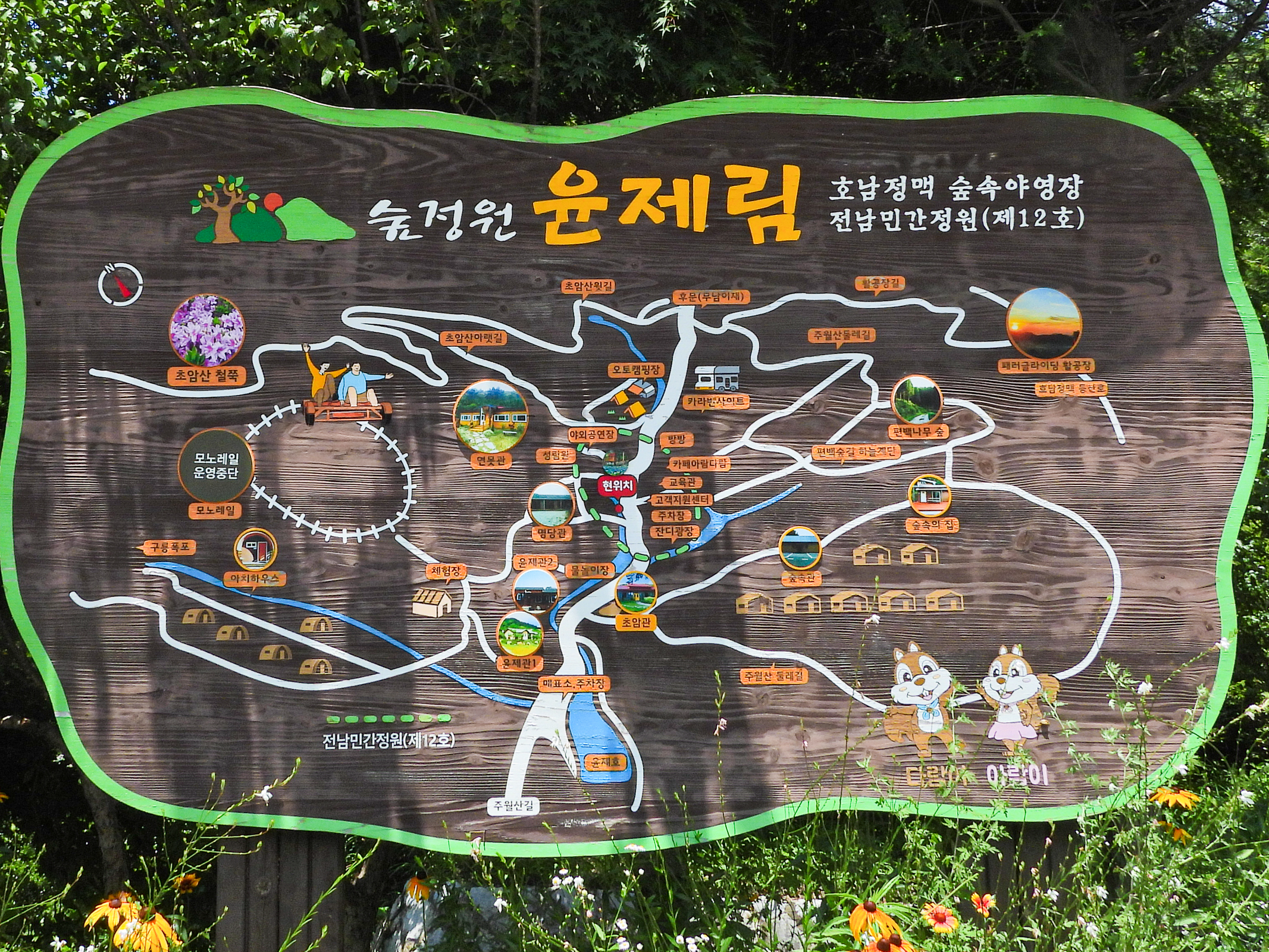 윤제림은 1964년 고 정상환 님께서 보성군 겸백면의 초암산과 주월산을 아우르는 임야를 매입하면서 시작되었습니다. 고 정상환 님은 그 당시 우리나라 산이 대부분 그렇듯이 민동산이었던 산야에 편백나무, 삼나무, 목백합 등을 조림하는 데 운 힘을 기울여 1978년 '조림왕'으로 추대되기도 하였습니다. 또한 염소 젖소 등을 키우는 한편 밤나무를 심어 대단지 밤나무 농장(수남농장)을 운영하여 사람들은 이곳을 "밤나무골" 또는 "밤골" 이라 불렀습니다. 지역사회에 공헌이 켰던 고 정상환 님은 윤제장이라는 훈장을 받자 자신의 호를 윤제 라 하였고 세월이 흘러 밤나무가 고령화되어 참나무로 수종 갱신하면서 "상수리 할아버지"라는 애칭도 얻었습니다. 상수리(도토리)를 좋아하는 다람쥐를 윤제림 마스코트로 선정한 연유입니다.