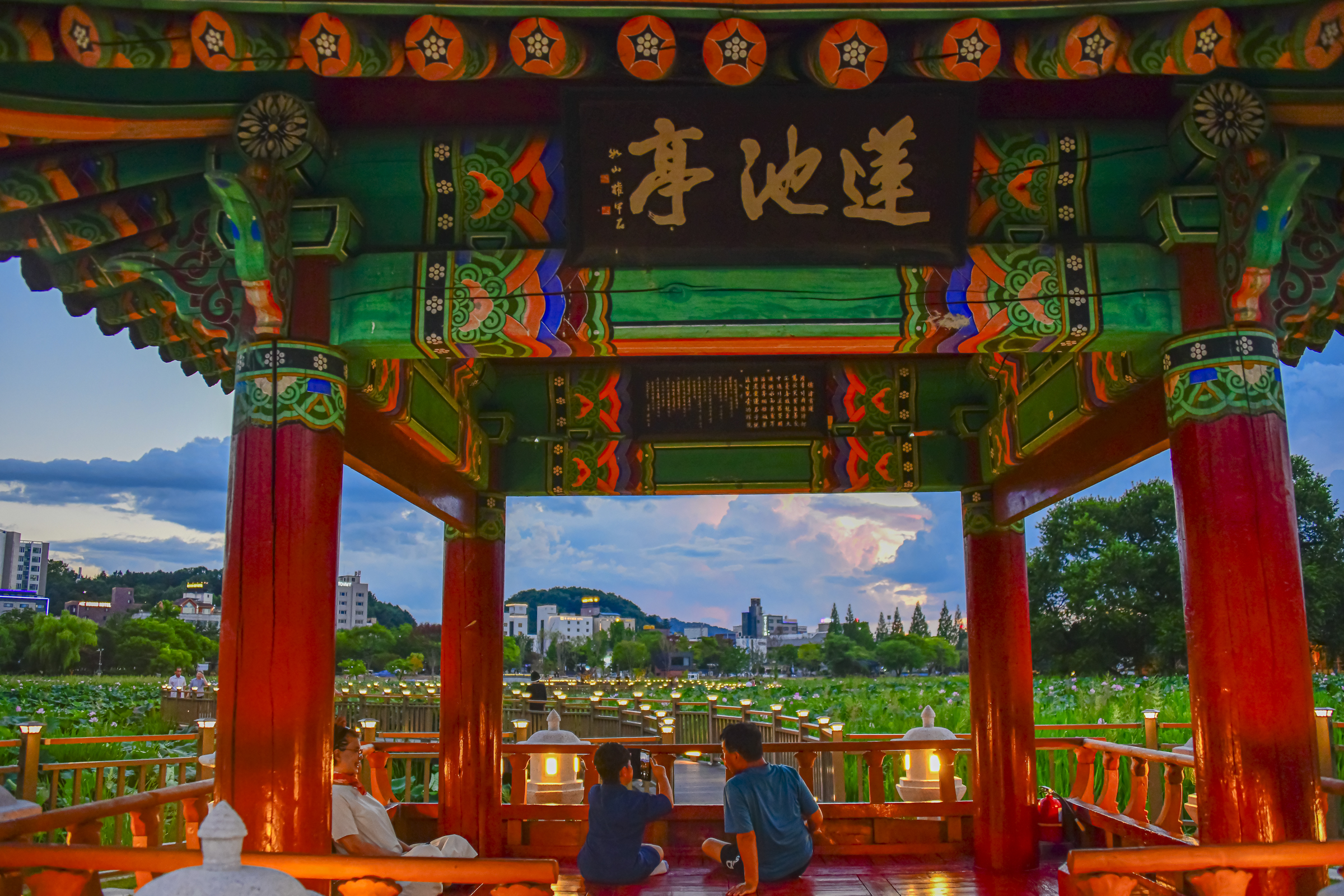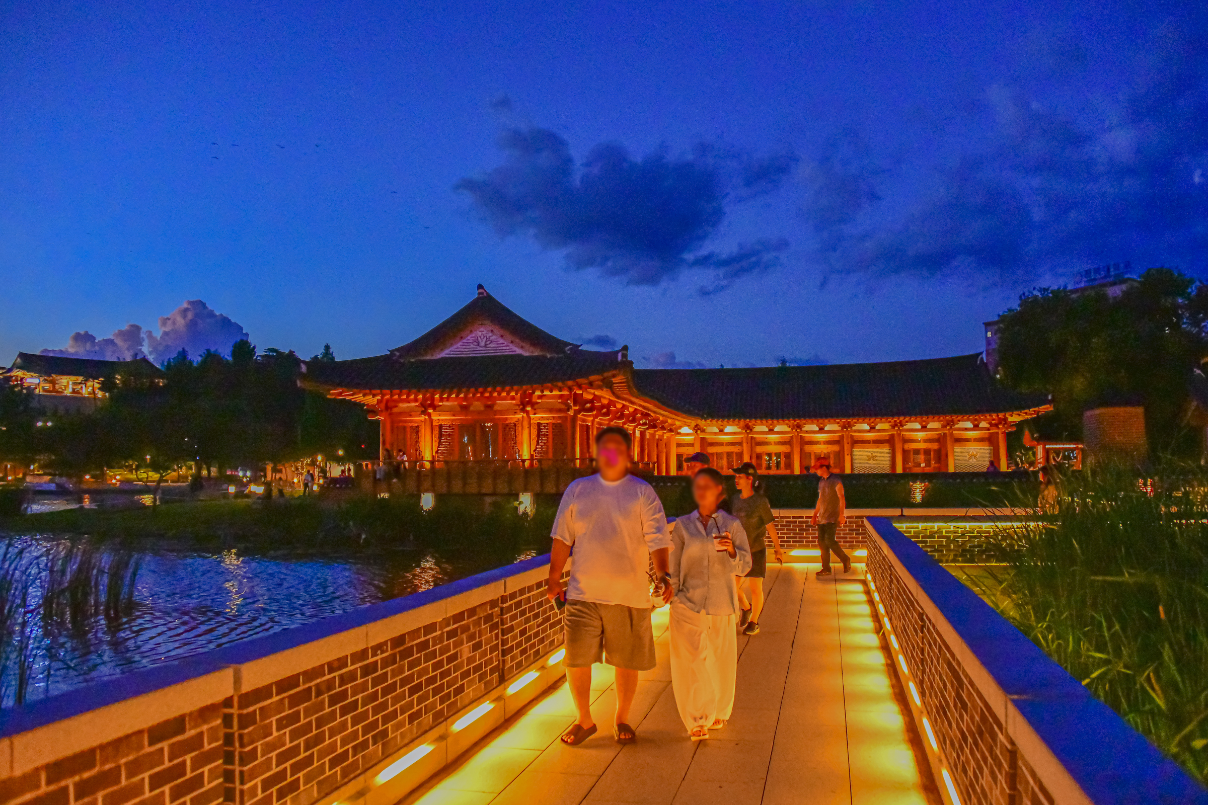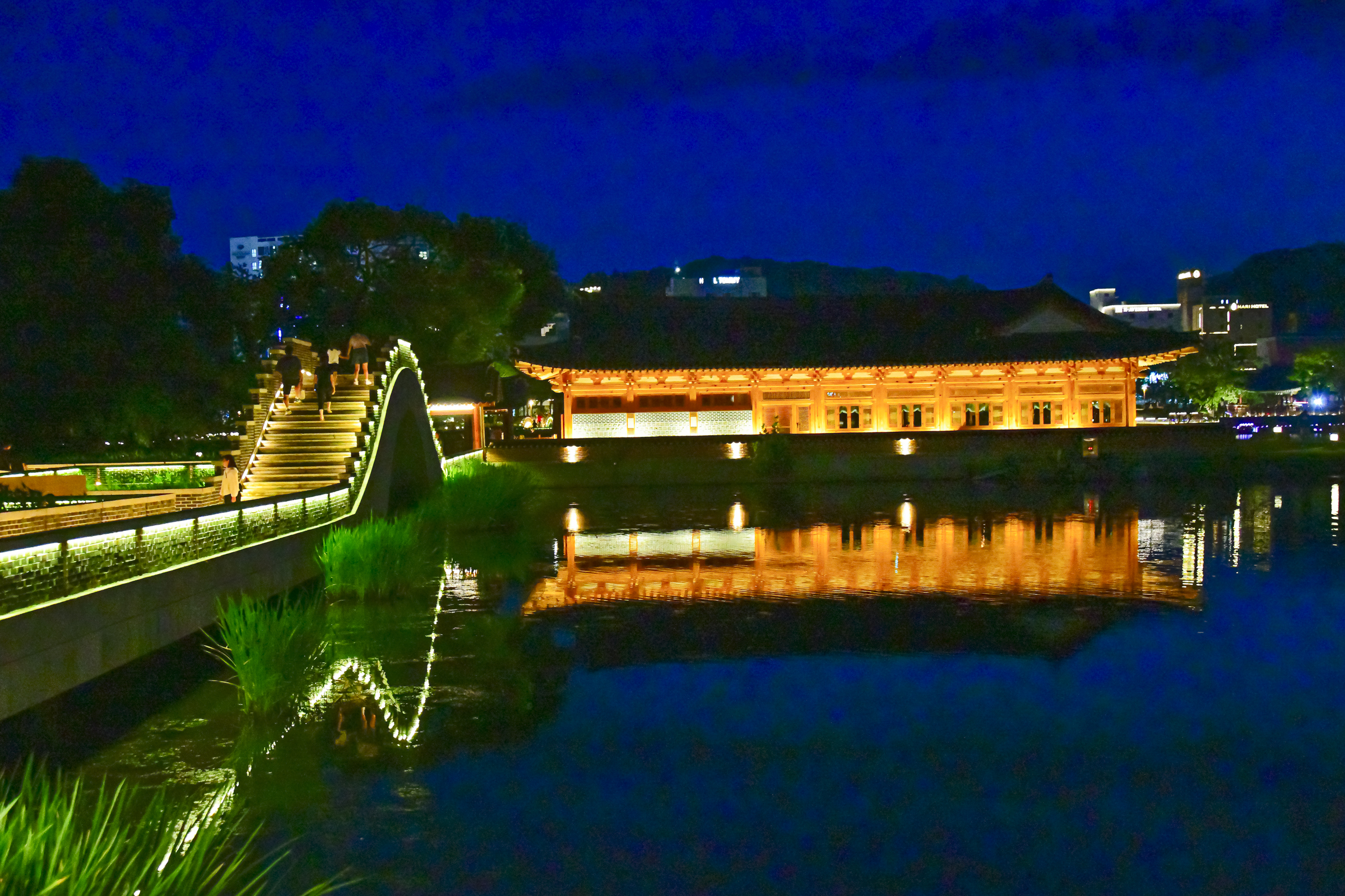 밤에는 연못 위로 아름다운 야간 경관 조명도 켜져 운치를 더합니다.