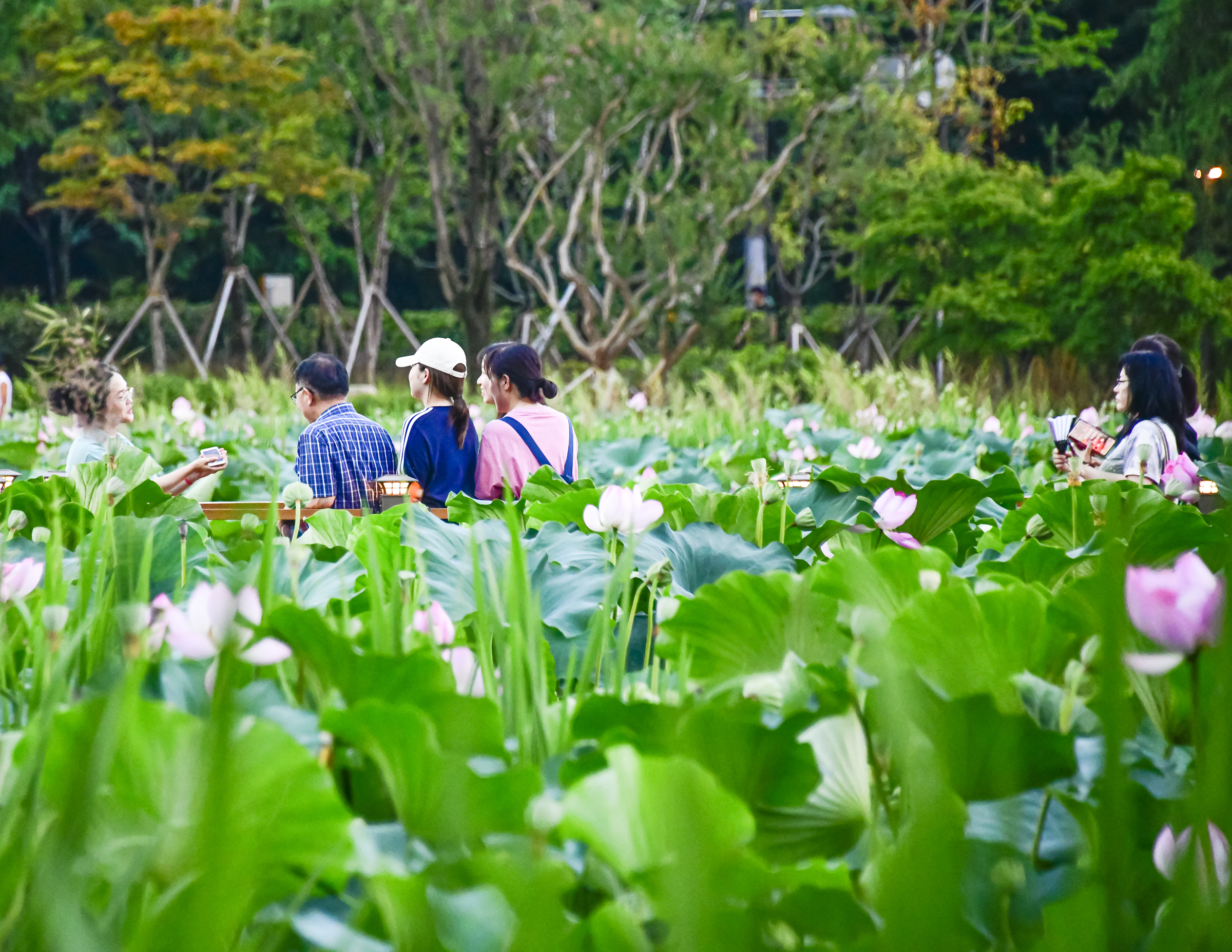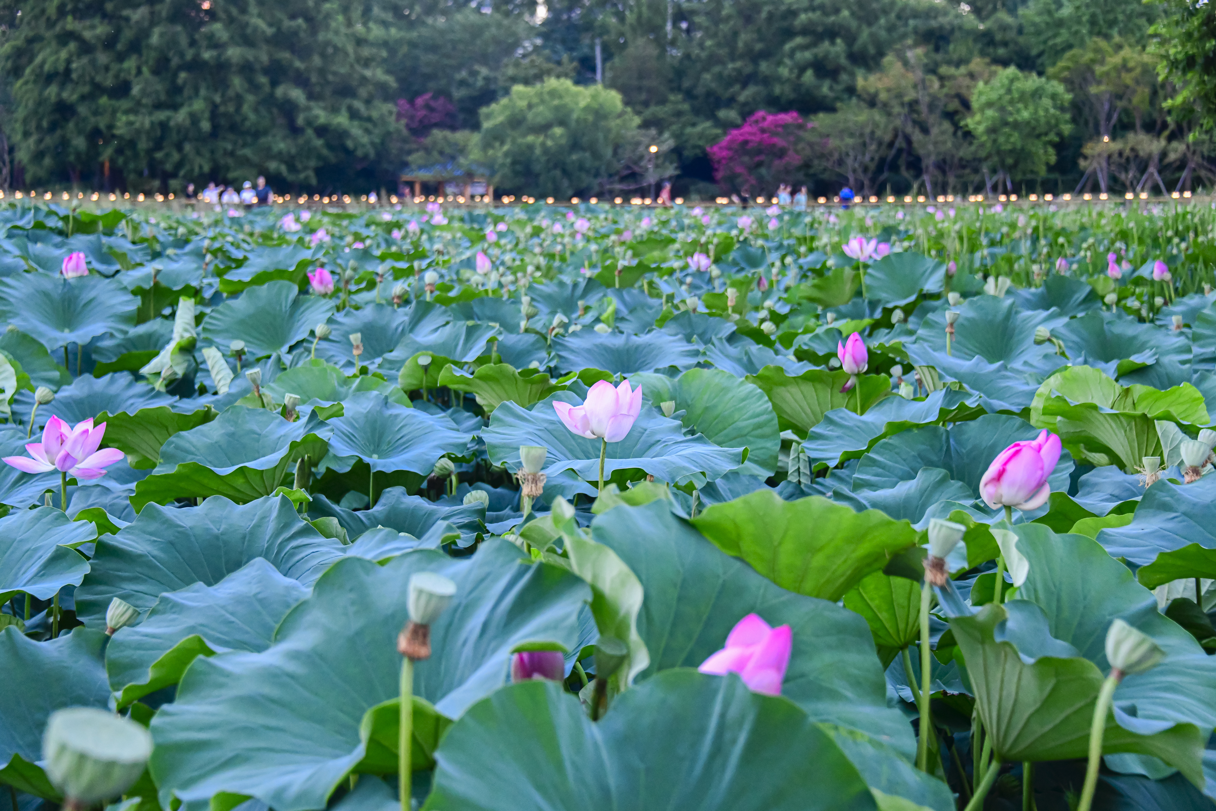 여름철, 특히 7월에는 연못 전체가 연꽃으로 뒤덮여 장관을 이루며, 연화교를 건너며 연꽃을 가까이에서 감상할 수 있습니다.